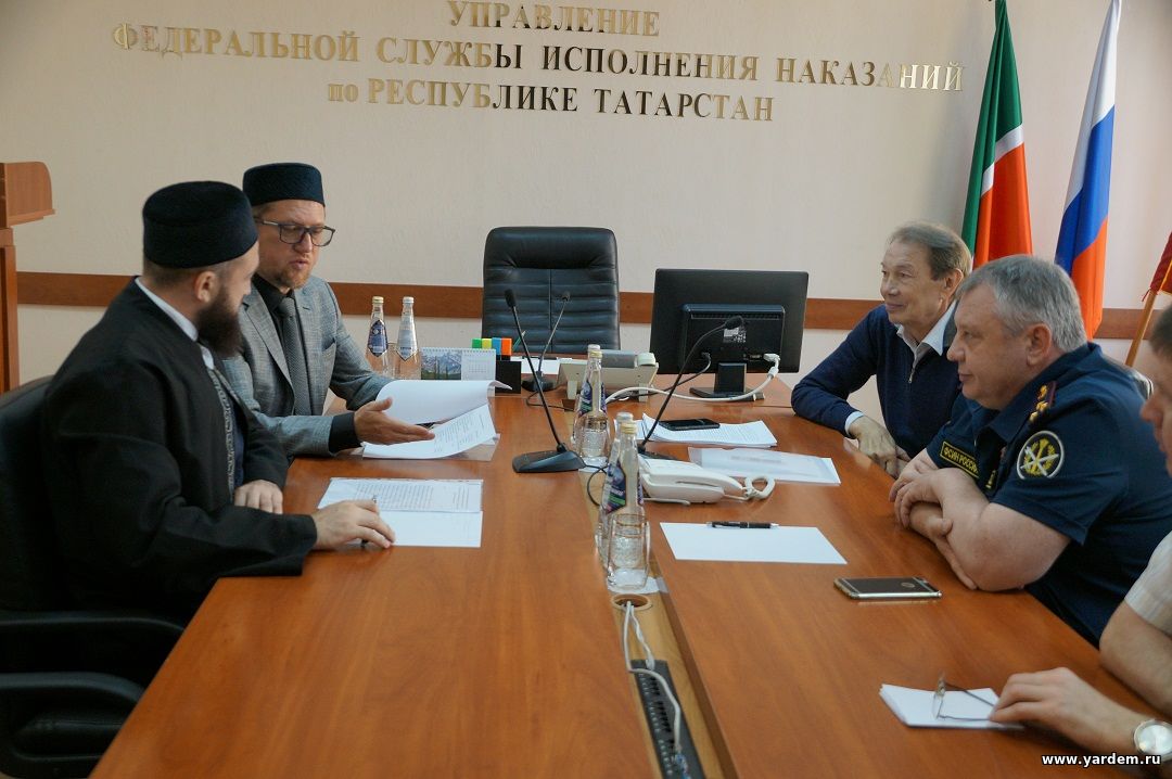 Сегодня муфтий Татарстана Камиль хазрат Самигуллин принял участие в обсуждении проекта Соглашения о взаимодействии между Управлением Федеральной службы исполнения наказаний России по РТ и Духовным управлением мусульман РТ. Участниками встречи также стали врио начальника УФСИН России по РТ Эдуард Хиалеев, помощник начальника Управления по работе с верующими Рафаиль Давлеев, советник муфтия РТ по социальным вопросам, председатель Совета фонда НИБФ "Ярдэм" Илдар хазрат Баязитов.
